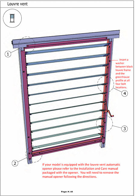 Engineered for precision and style, the Exaco Louvre Window not only enhances ventilation but also complements the refined architectural design of your greenhouse. It comes with an extra glass piece to fit below the window, ensuring a perfect and seamless installation.